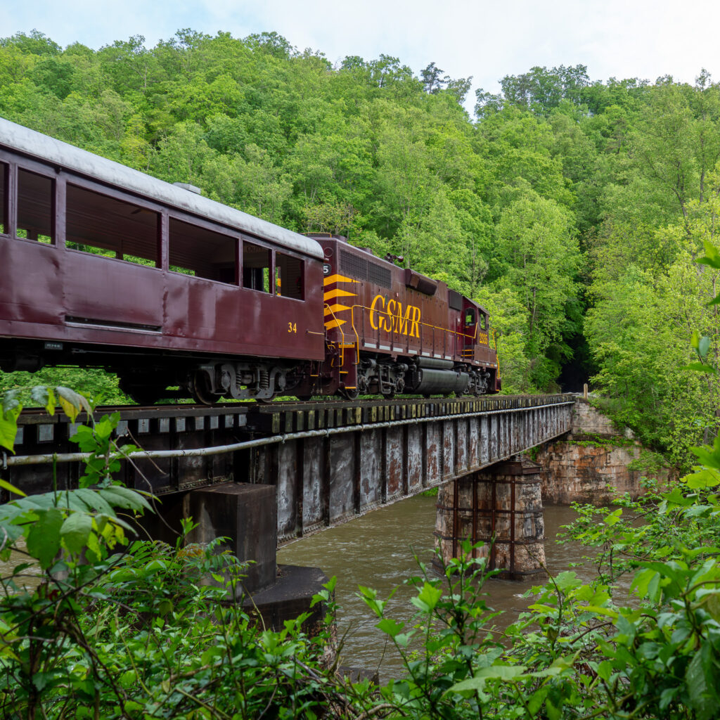 The historic Great Smoky Mountains Railroad Depot sits in the heart of Bryson City, North Carolina – a favorite regional attraction for family fun. A round-trip on the train is an ideal way to see extraordinary places that you can’t get to by car. Get a front-row view of the Great Smoky Mountains National Park, Nantahala National Forest, Fontana Lake, extraordinary trestles, pristine mountain rivers, historic structures, and stunning foliage.